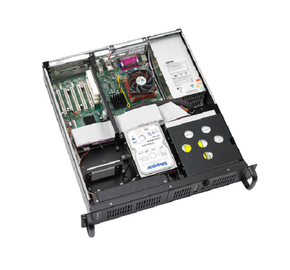 - Безопасность: Передняя панель оснащена дверцей с замком, предотвращающей несанкционированный доступ к внутренним компонентам.