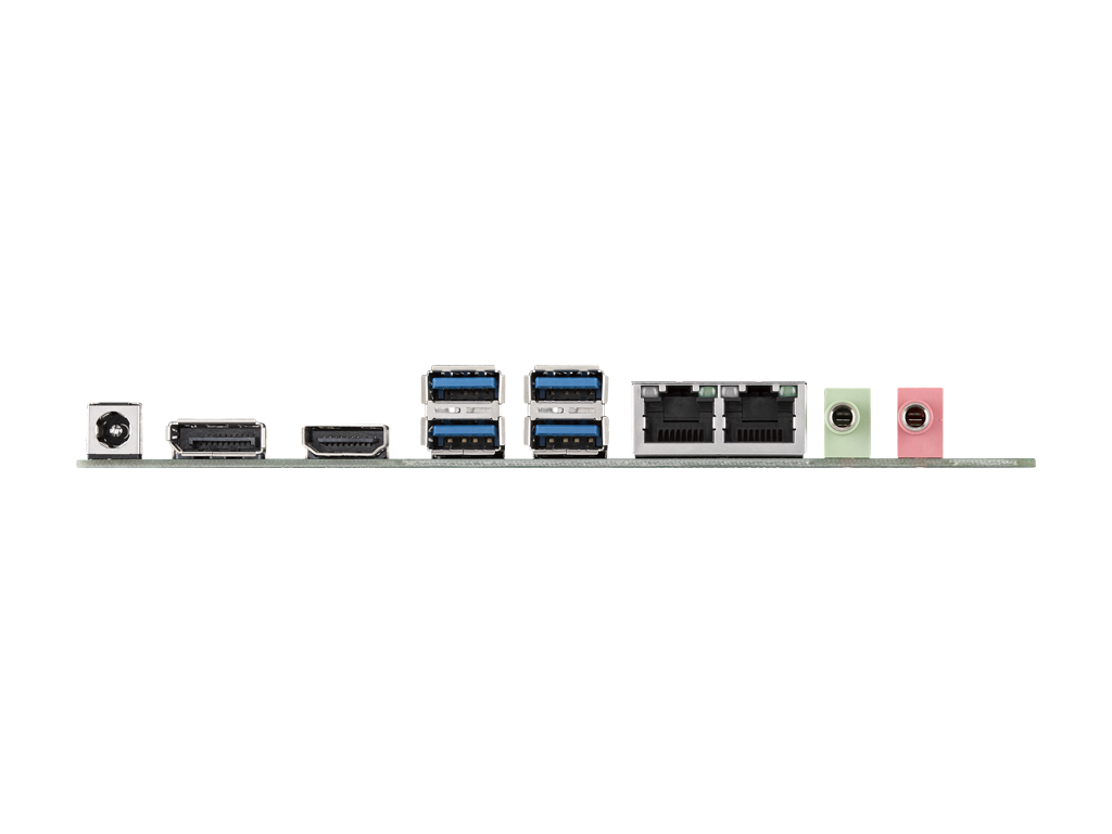 Плата оснащена двумя слотами SO-DIMM для оперативной памяти DDR4, поддерживающими объем до 32 ГБ с частотой 2133 МГц. Это позволяет эффективно работать с ресурсоемкими приложениями и многозадачностью, обеспечивая стабильную работу системы в условиях интенсивных нагрузок.