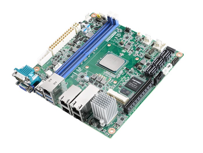 Плата поддерживает до 64 ГБ оперативной памяти DDR4, что позволяет эффективно работать с ресурсоемкими задачами. Для хранения данных предусмотрены шесть портов SATA III, один разъем mSATA и слот для карты памяти eMMC объемом 16 ГБ, обеспечивая гибкость в выборе и расширении системы хранения.