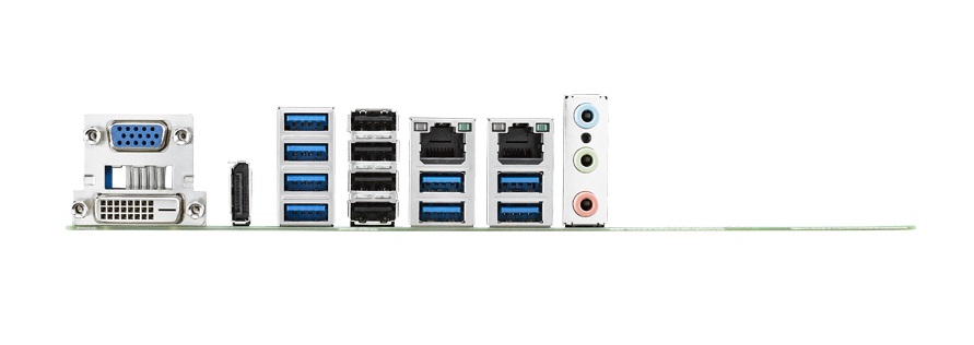 - Порты ввода-вывода: 8 x USB 2.0, 4 x USB 3.x, 8 x RS-232, 2 x RS-232/422/485, 1 x PS/2, что обеспечивает широкие возможности подключения периферийных устройств.