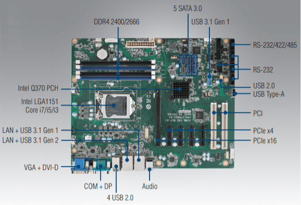 Промышленная плата Advantech AIMB-786G2-00A1 представляет собой высокопроизводительное решение формата ATX, предназначенное для интеграции в промышленные системы, требующие надежности и расширенной функциональности. Плата оснащена разъемом LGA1151, поддерживающим процессоры Intel 8-го поколения Core i7/i5/i3/Pentium/Celeron, обеспечивая частоты до 3,7 ГГц. Чипсет Intel Q370 гарантирует стабильную работу и совместимость с современными компонентами.