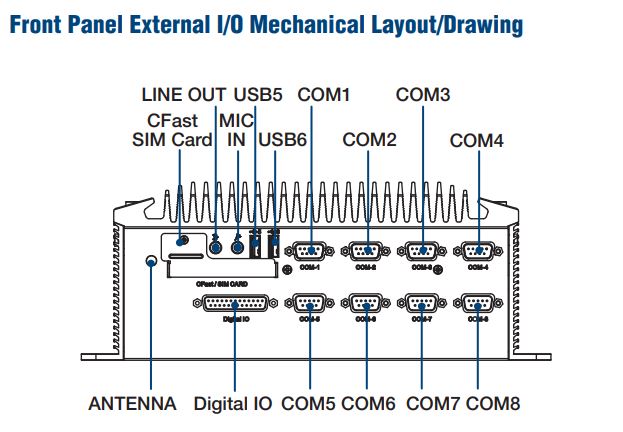 - COM-порты: 4 порта RS-232 и 4 порта RS-232/422/485, обеспечивающие гибкость в подключении различных устройств.