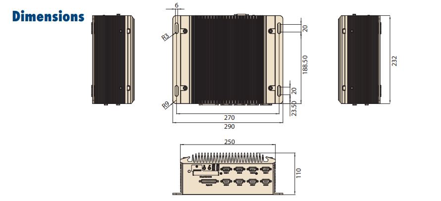 Компактные габариты (290 x 110 x 232 мм) и возможность настенного монтажа позволяют интегрировать ARK-3500F-00A1E в ограниченные пространства, обеспечивая гибкость в размещении оборудования.