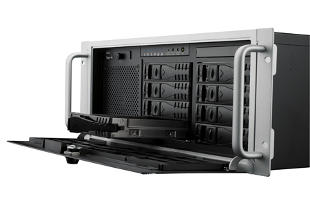 - Отсеки для накопителей: оснащен четырьмя съемными отсеками для 3,5" или 2,5" дисков с поддержкой горячей замены, одним отсеком для оптического привода Slim ODD и одним внутренним отсеком для 3,5" диска. При установке дополнительного комплекта расширения количество съемных отсеков может быть увеличено до восьми, что позволяет достичь высокой емкости хранения данных.