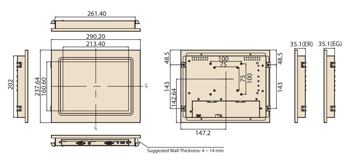 - Гибкость монтажа: Возможность монтажа в панель и использование стандартного VESA-крепления 75 x 75 мм или 100 x 100 мм позволяет интегрировать монитор в различные системы и устройства, обеспечивая удобство установки и эксплуатации.