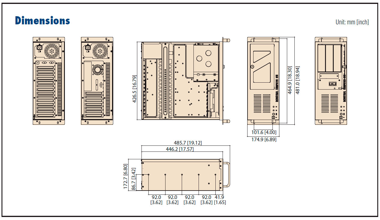 Корпус IPC-510MB-00XCE от компании Advantech представляет собой надежное и функциональное решение для монтажа в 19-дюймовую стойку. С высотой 4U и габаритами 481 x 175 x 446 мм, он обеспечивает оптимальное пространство для установки различных компонентов промышленного компьютера.