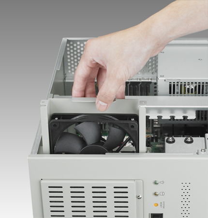 Система охлаждения корпуса основана на одном 12-сантиметровом вентиляторе, обеспечивающем эффективный воздушный поток. Наличие воздушного фильтра способствует поддержанию чистоты внутренних компонентов, продлевая их срок службы. Рабочая температура корпуса составляет от 0 до +40°C, а влажность — от 10 до 85% без конденсата, что делает его подходящим для эксплуатации в различных промышленных условиях.