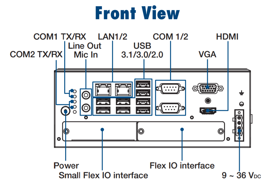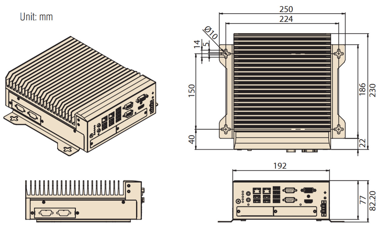 - Порты ввода/вывода: В наличии два порта RS-232/422/485 для подключения промышленного оборудования, восемь портов USB 3.0 для периферийных устройств, а также аудиовыход и микрофонный вход.