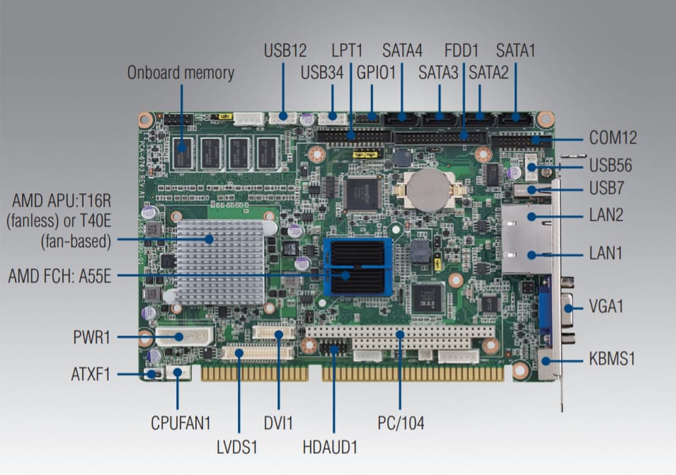 Плата PCA-6763VG-00A1E CIRCUIT BOARD, AMD T16R+A55E, VGA+LVDS, single LAN
