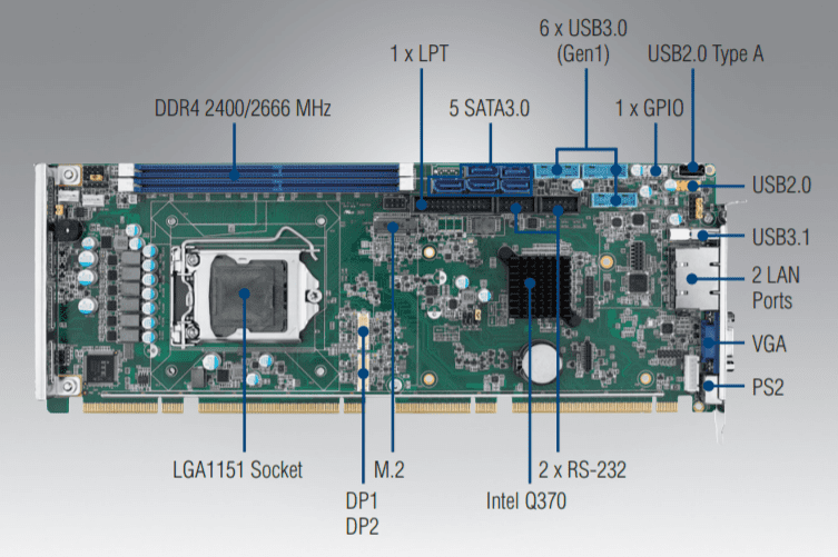 Промышленная процессорная плата Advantech PCE-5131G2-00A1 формата PICMG 1.3 предназначена для интеграции в промышленные системы, требующие высокой производительности и надежности. Она оснащена разъемом LGA1151, поддерживающим процессоры Intel Core i7/i5/i3, а также Pentium и Celeron 8-го и 9-го поколений, что обеспечивает гибкость в выборе вычислительных мощностей в зависимости от специфики задачи.