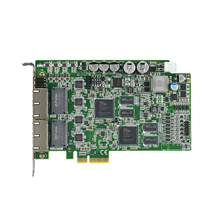 Системная шина PCI Express x4 гарантирует высокую пропускную способность и совместимость с современными вычислительными платформами. Плата оснащена функциями GoE (GigE Vision Offload Engine), ToE (Trigger over Ethernet) и поддерживает стандарты GigE Vision, GENiCAM и GENTL, что обеспечивает гибкость и совместимость с различными камерами и программным обеспечением для обработки изображений.