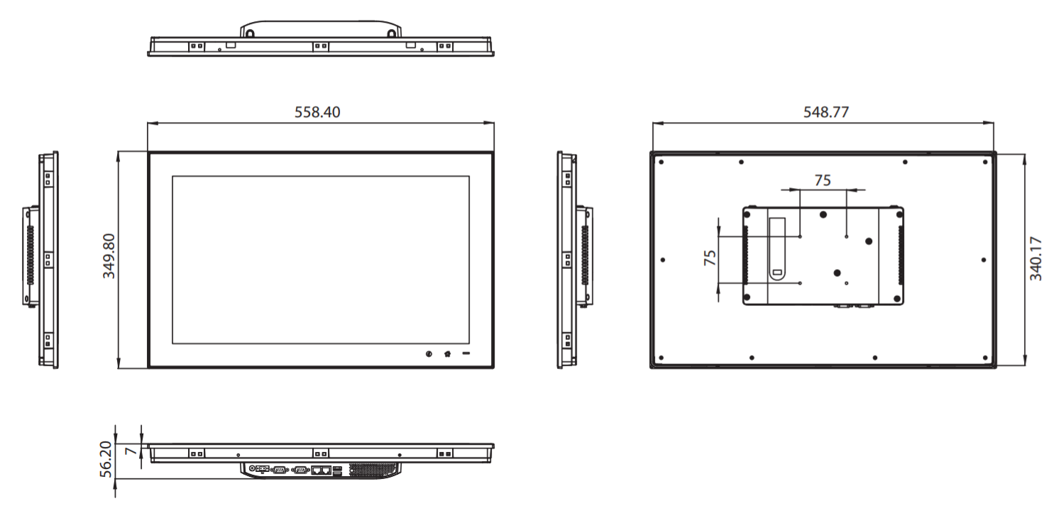 Устройство поддерживает широкий диапазон входного напряжения от 12 до 24 В постоянного тока, что обеспечивает гибкость при подключении к различным источникам питания. Возможности монтажа включают настольный, настенный, VESA-крепление и монтаж в панель, что позволяет интегрировать компьютер в различные производственные и автоматизационные системы.