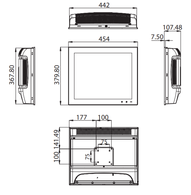- Сенсорный экран: Резистивный 5-проводный сенсорный экран с интерфейсом USB, рассчитанный на 35 миллионов касаний, что обеспечивает долгосрочную надежность при интенсивном использовании.