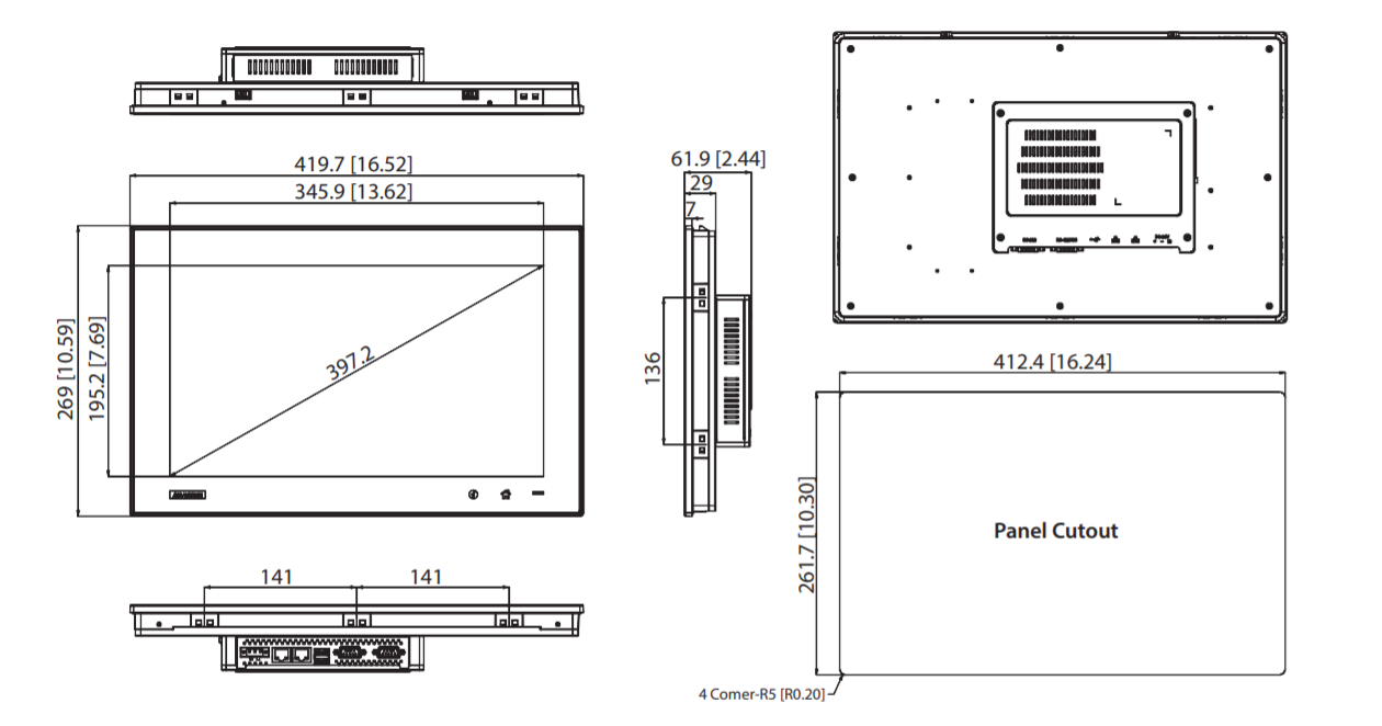 - Порты ввода-вывода: Один порт USB 2.0, один порт USB 3.0, один порт RS-232 и один порт RS-232/422/485 позволяют подключать различные периферийные устройства и обеспечивают гибкость в интеграции с существующими системами.