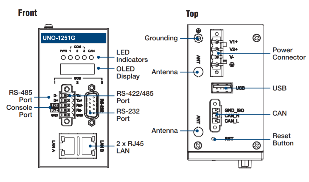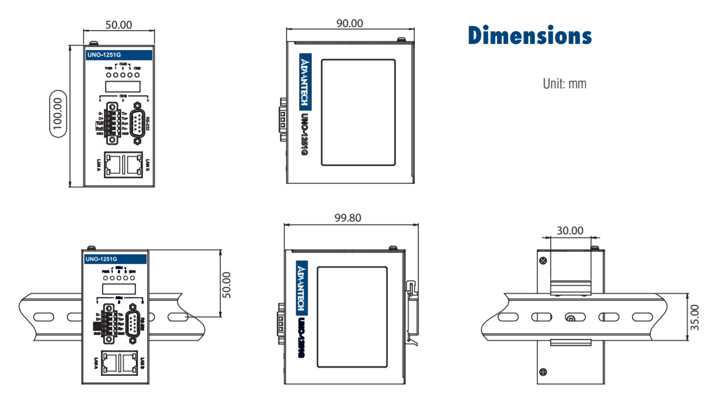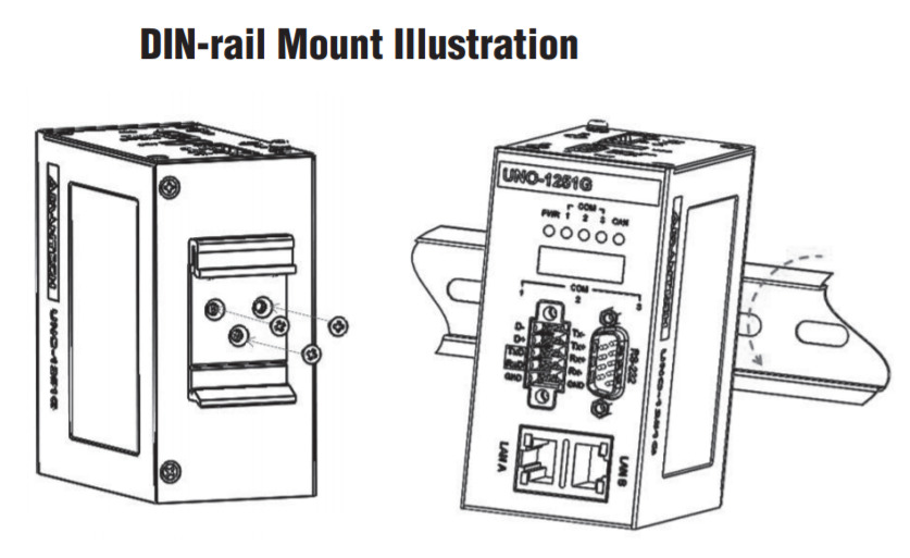 UNO-1251G-A0AE спроектирован для монтажа на DIN-рейку, что упрощает его интеграцию в существующие системы и обеспечивает компактное размещение в распределительных щитах и шкафах управления. Корпус устройства выполнен из алюминия, что обеспечивает прочность и надежность при эксплуатации.