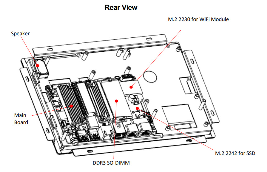 Этот панельный компьютер поддерживает карты памяти формата Del и M.2, имеет встроенные динамики (опция), что делает его универсальным решением для промышленных и коммерческих задач. Система охлаждения пассивная, что обеспечивает бесшумную работу и надежность в эксплуатации.