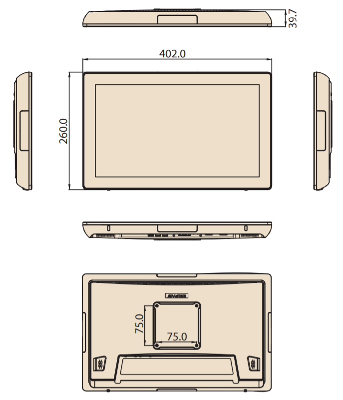 Класс защиты IP65 по передней панели гарантирует защиту от пыли и влаги, что делает устройство пригодным для эксплуатации в сложных условиях. Пассивная система охлаждения обеспечивает бесшумную работу и повышает надежность устройства. Возможность монтажа на стену, в панель или на стойку с помощью стандартных отверстий VESA 75 x 75 мм обеспечивает гибкость установки в различных средах.
