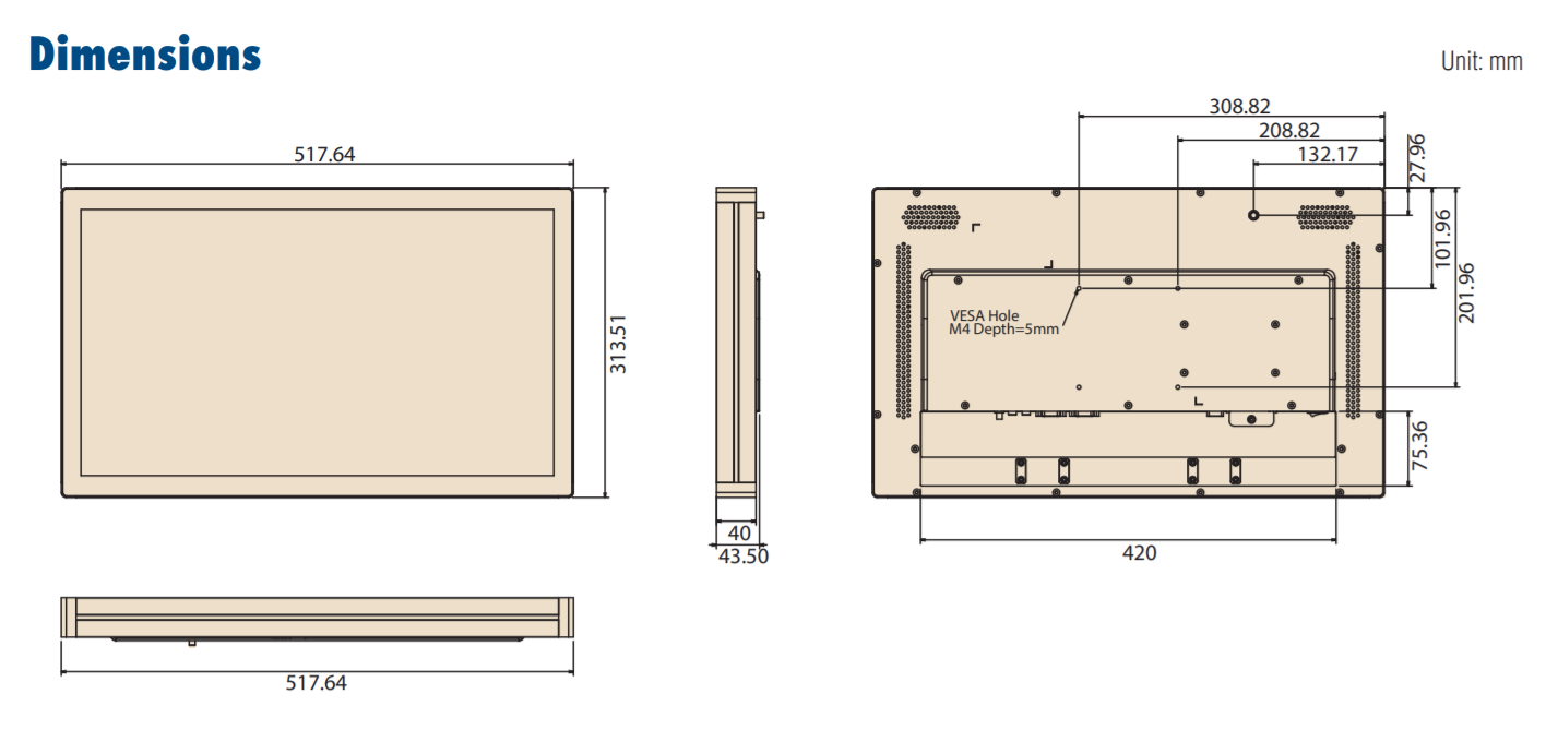 Корпус устройства выполнен из алюминия, что обеспечивает прочность и долговечность. Степень защиты по передней панели — IP65, гарантирует защиту от пыли и влаги, что делает компьютер пригодным для эксплуатации в сложных промышленных условиях. Пассивная система охлаждения без вентиляторов снижает уровень шума и повышает надежность устройства. Диапазон рабочих температур от 0 до 40°C позволяет использовать компьютер в различных климатических условиях.