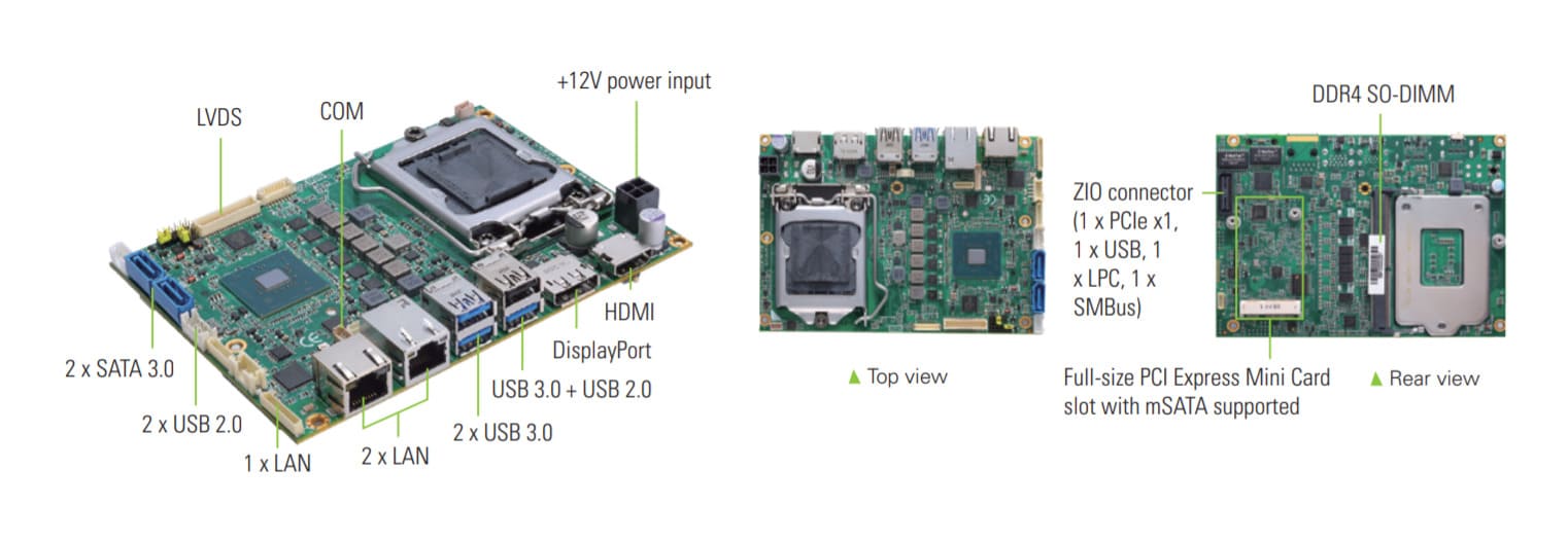 Плата CAPA520PHGG-Q370-ZIO ( E38E520102 ) LGA1151 Socket for 8th Intel Core i with Q370 chipset dual LANs 1 COM port 3 USB2.0+3 USB3.0 DisplayPort/LVDS/HDMI and ZIO connector