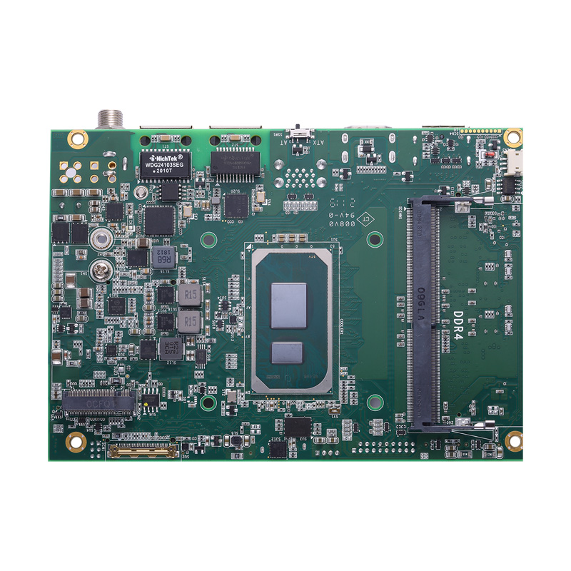 Плата поддерживает до 64 ГБ оперативной памяти DDR4-3200 МГц, что позволяет эффективно обрабатывать ресурсоемкие задачи. Для подключения периферийных устройств предусмотрены три порта USB 3.2 Gen2 и четыре порта USB 2.0. Два последовательных порта RS-232/422/485 обеспечивают гибкость в подключении различных устройств. Цифровые входы/выходы (GPIO) с 8 битами расширяют возможности взаимодействия с внешними системами.