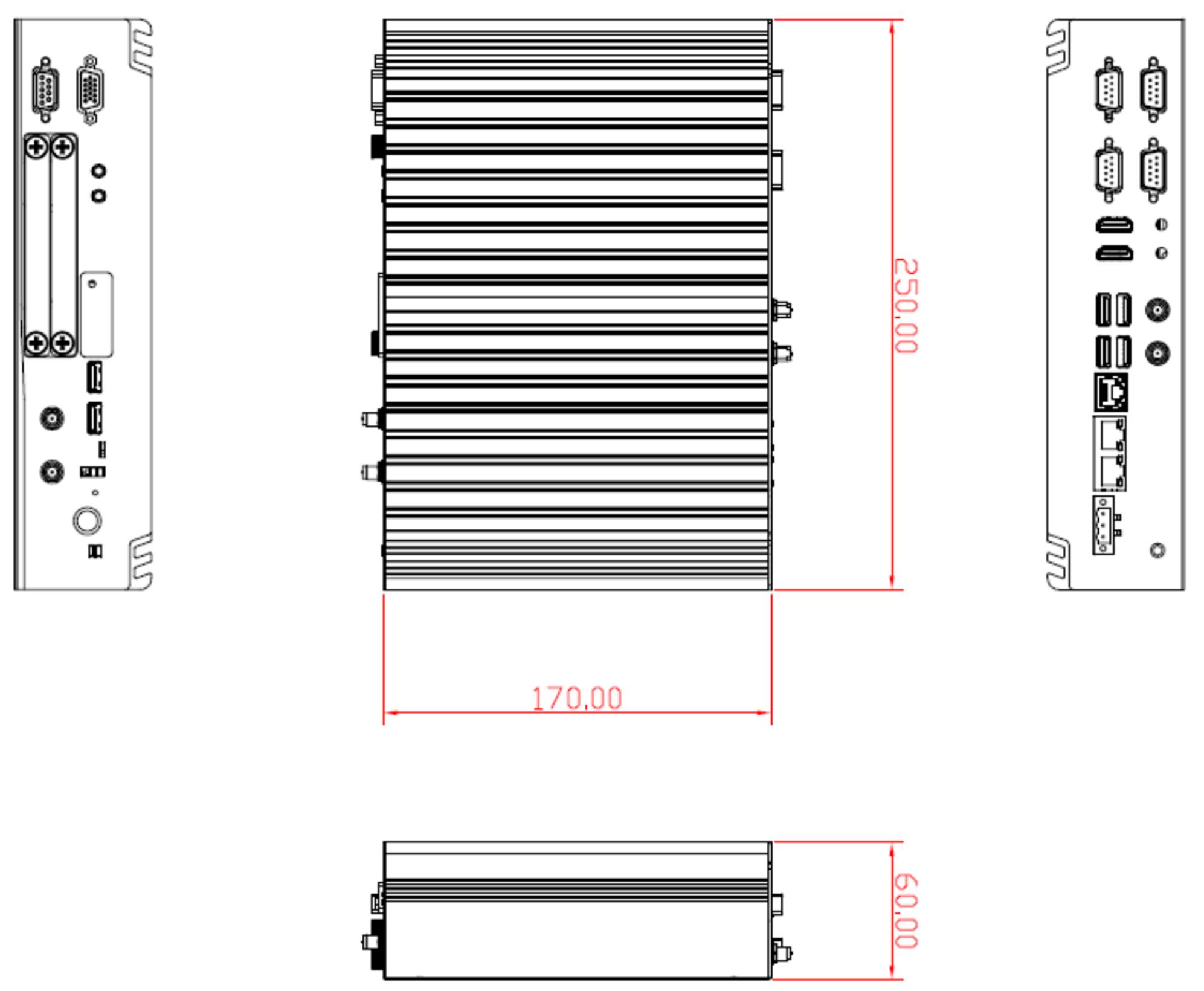 Сетевые возможности представлены тремя портами Gigabit Ethernet, обеспечивающими высокоскоростное подключение. Для расширения функциональности доступны два слота Mini PCIe, поддерживающие дополнительные модули, такие как Wi-Fi, Bluetooth и LTE. Интерфейсы ввода/вывода включают два порта USB 2.0, четыре порта USB 3.2, два порта RS-232, два порта RS-232/422/485 и восемь каналов GPIO.