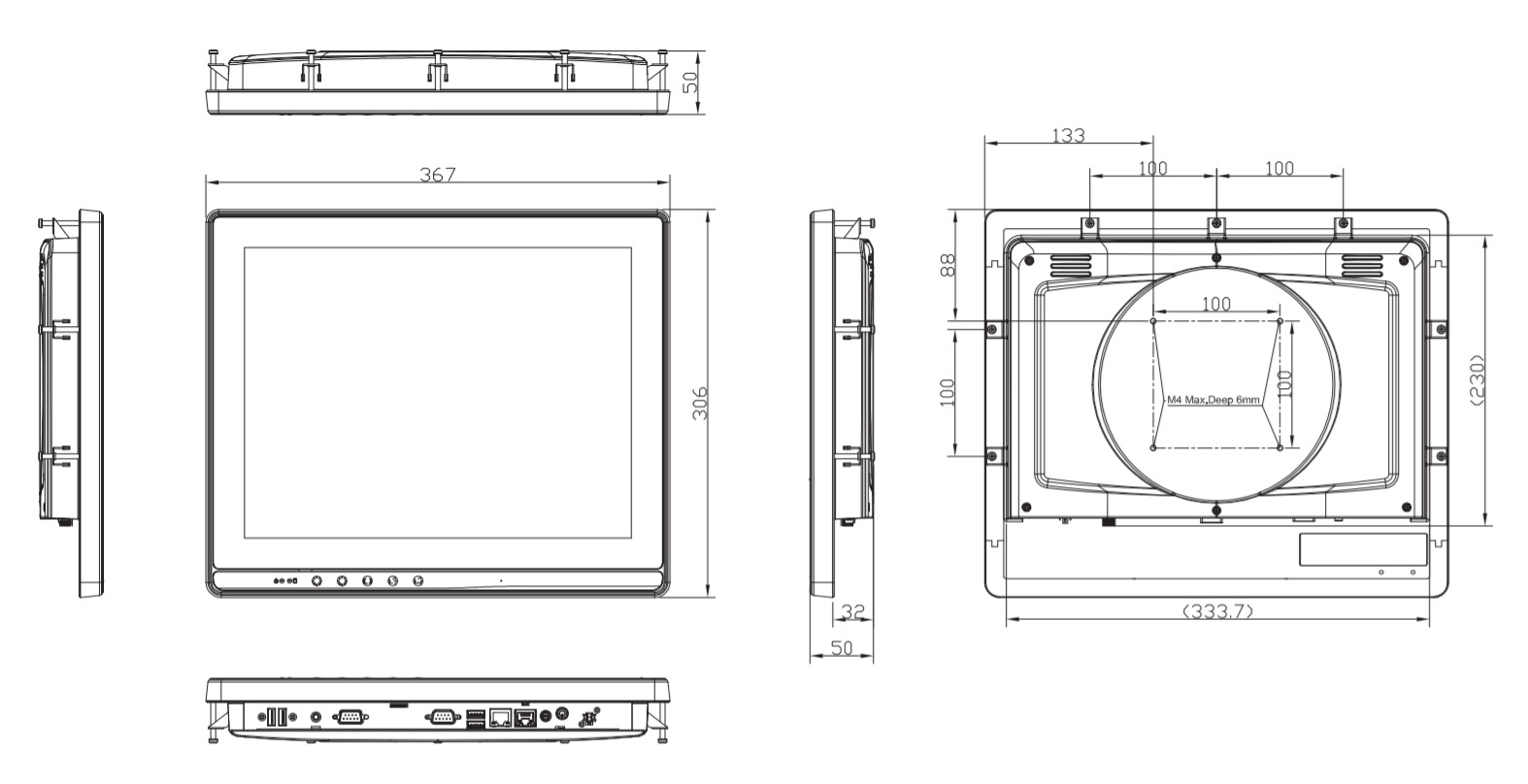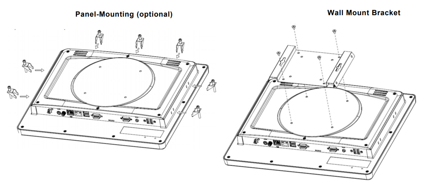 - Универсальность монтажа: Поддержка различных вариантов установки, включая монтаж на стену, в панель, на стол и с использованием VESA 100x100, обеспечивает гибкость в размещении устройства в различных средах.