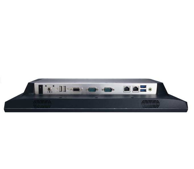 Для подключения периферийных устройств и сетевых интерфейсов предусмотрены: два порта USB 2.0, два порта USB 3.0, два COM-порта (RS-232/422/485), два порта Gigabit Ethernet (RJ-45), аудиовыход и VGA-порт. Два слота PCI Express Mini Card позволяют расширять функциональность устройства, например, добавляя модули Wi-Fi или 4G LTE для беспроводной связи. Встроенная внутренняя антенна WLAN упрощает установку и повышает надёжность соединения.