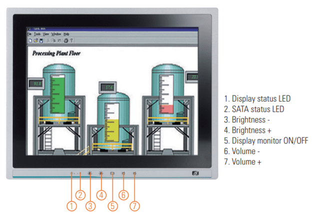 - Монтаж: поддержка настенного монтажа, монтажа в панель и крепления VESA 100x100 и 75x75, что обеспечивает гибкость в установке устройства в различных производственных и автоматизационных средах.