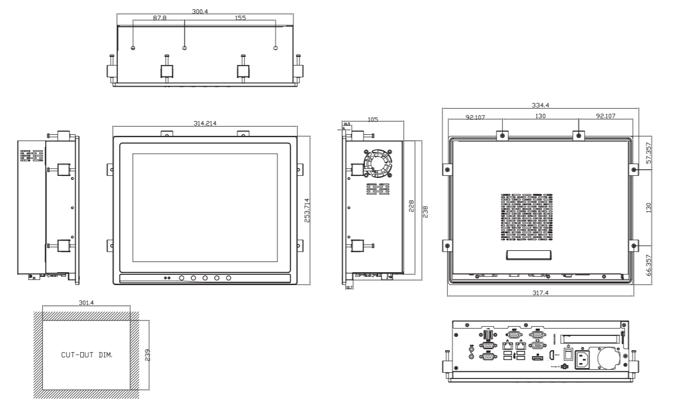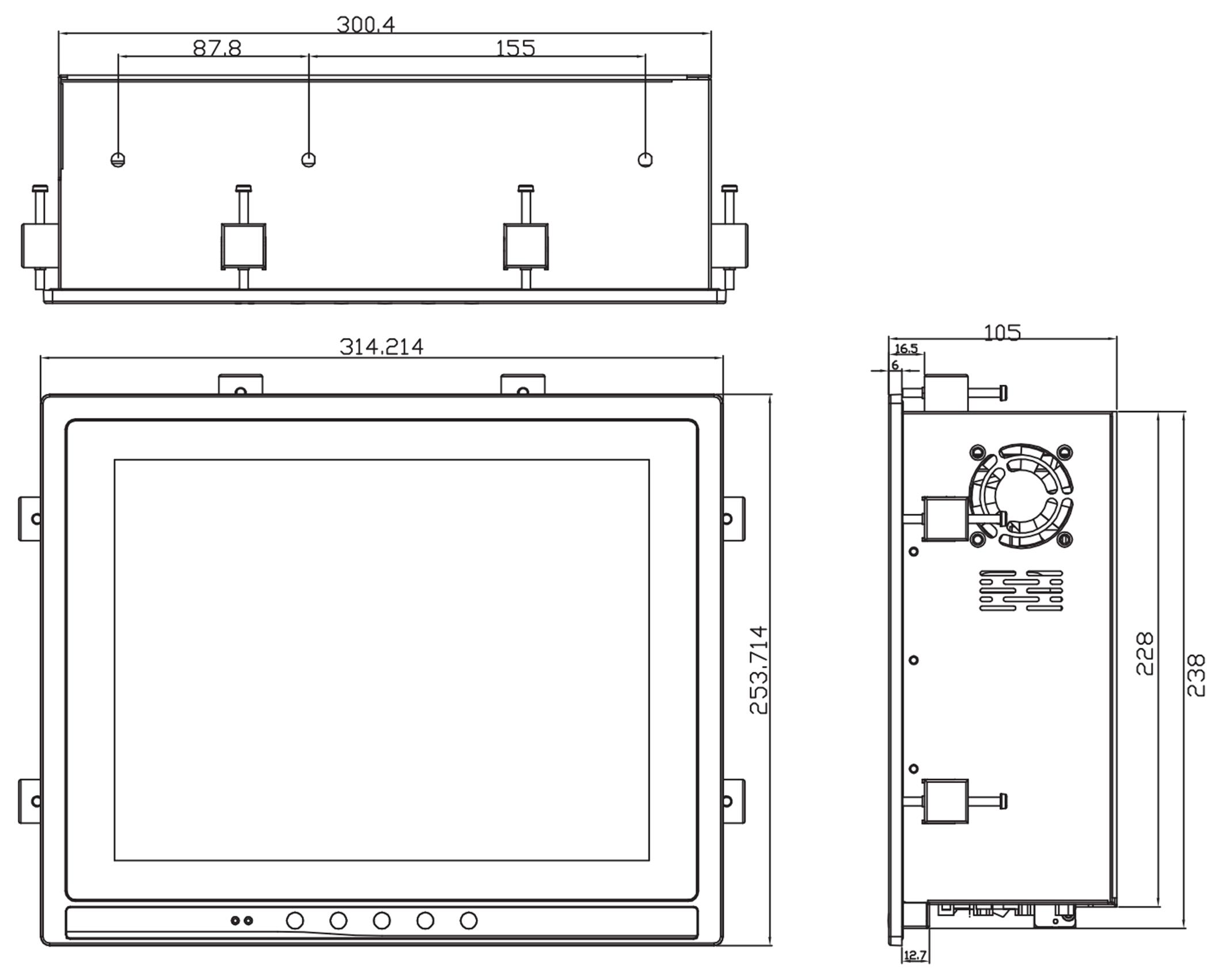 - Монтаж: Возможность монтажа на стену, в панель или с использованием VESA-креплений (100x100 мм и 75x75 мм), обеспечивая гибкость в установке устройства в различных условиях.