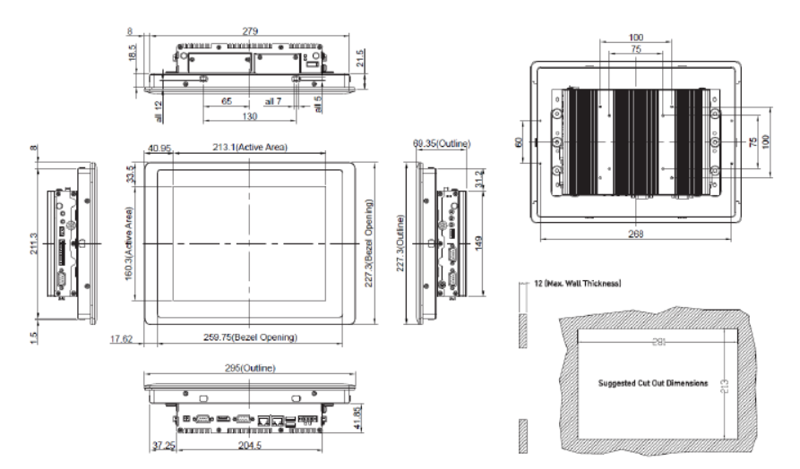 Устройство поддерживает до 8 ГБ оперативной памяти DDR3L через один слот SO-DIMM. Для хранения данных предусмотрены два отсека для 2,5-дюймовых накопителей SATA III и слот mSATA. Видеовыходы включают CDS, DisplayPort и VGA, позволяя подключать дополнительные дисплеи. Сетевые возможности представлены четырьмя портами Ethernet 10/100/1000 с поддержкой PoE, обеспечивая гибкость подключения. Для периферийных устройств доступны четыре порта USB 3.0 и четыре порта COM (RS-232/422/485). Также имеются восемь изолированных портов ввода/вывода (GPIO), два полноразмерных разъёма Mini PCIe и слот для SIM-карты для беспроводных соединений.