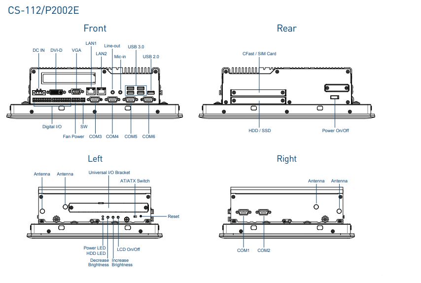Панельный компьютер Cincoze CS-112HC/P2002E-i5-PI оснащён 12,1-дюймовым TFT-LCD дисплеем с яркостью 1500 нит, обеспечивая чёткое изображение при ярком солнечном свете. Встроенный процессор Intel Core i5-6300U 6-го поколения с тактовой частотой до 3,0 ГГц и поддержкой до 32 ГБ оперативной памяти DDR4 через два слота SO-DIMM гарантирует высокую производительность для промышленных приложений.