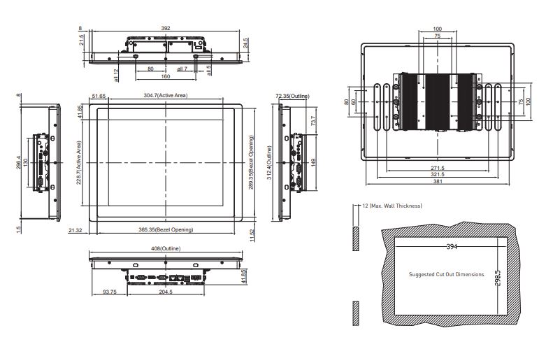 Класс защиты IP65 по передней панели гарантирует защиту от пыли и влаги, что делает устройство пригодным для эксплуатации в сложных условиях. Пассивная система охлаждения без вентиляторов снижает уровень шума и повышает надёжность работы. Диапазон рабочих температур от -20°C до +70°C позволяет использовать компьютер в различных климатических зонах.
