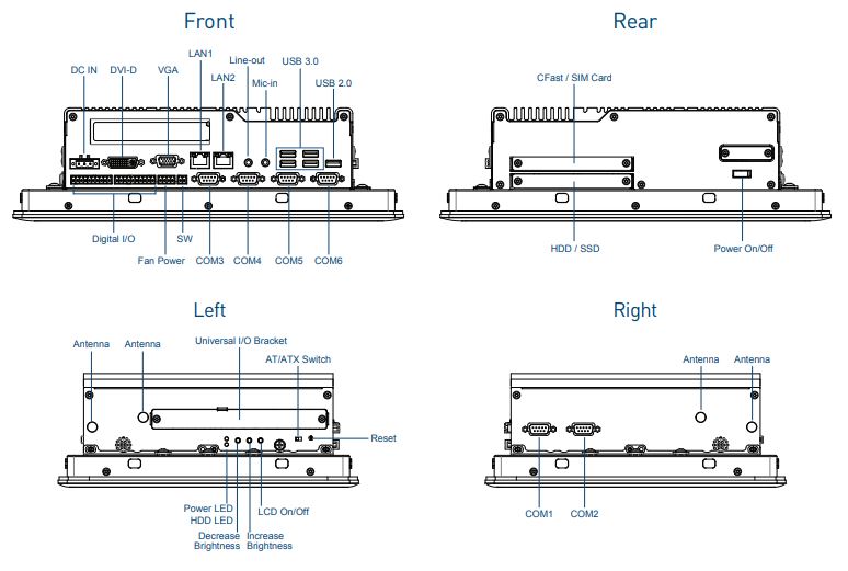 Модульный панельный компьютер Cincoze CV-112R/P2002E-i3 оснащён 12,1-дюймовым TFT-LCD дисплеем с разрешением 800 x 600 пикселей и соотношением сторон 4:3. Сенсорный экран с резистивной технологией обеспечивает точный отклик и надёжную работу в промышленных условиях. Встроенный процессор Intel Core i3-6100U с тактовой частотой 2,3 ГГц обеспечивает стабильную производительность для задач автоматизации и мониторинга. Максимальный объём оперативной памяти DDR4 достигает 32 ГБ, что позволяет эффективно работать с ресурсоёмкими приложениями. Для хранения данных предусмотрены два отсека для 2,5-дюймовых накопителей SATA II (3 Гбит/с) и два слота mSATA, обеспечивая гибкость в выборе конфигурации хранения. Сетевые возможности включают четыре порта Ethernet 10/100/1000 Мбит/с с поддержкой PoE, что упрощает подключение к промышленным сетям и снижает количество необходимых кабелей. Дополнительные интерфейсы: один USB 2.0, четыре USB 3.x, шесть портов RS-232/422/485, а также цифровые входы/выходы (GPIO), CFM и CDS. Для расширения функциональности доступны слоты Mini PCIe, CFM и CDS. Класс защиты IP65 по передней панели гарантирует защиту от пыли и влаги, что делает устройство подходящим для эксплуатации в сложных условиях. Пассивная система охлаждения обеспечивает бесшумную работу и повышает надёжность устройства. Размеры устройства составляют 345 x 265,3 x 100 мм, а вес — 6,34 кг, что облегчает монтаж и интеграцию в различные производственные и автоматизированные системы. Модульный дизайн позволяет адаптировать компьютер под специфические требования, обеспечивая гибкость в применении. Cincoze CV-112R/P2002E-i3 используется в сферах промышленной автоматизации, транспортной инфраструктуры, системах видеонаблюдения и других областях, где требуется надёжное и производительное оборудование с возможностью расширения функциональности.