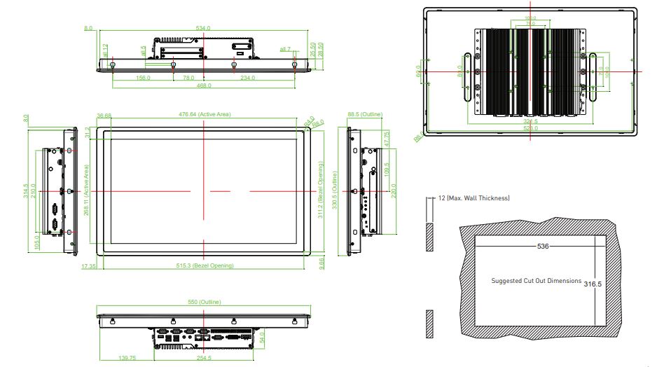 Панельный компьютер Cincoze CV-W121C/P2002-i5 оснащён 21,5-дюймовым TFT Full HD дисплеем с соотношением сторон 16:9 и проекционно-ёмкостным сенсорным экраном, обеспечивающим высокую чувствительность и точность ввода.