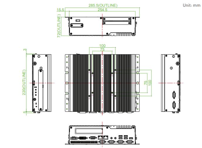 - Слоты расширения: два полноразмерных Mini PCIe, слот для SIM-карты, интерфейсы CFM, CDS и Universal I/O.