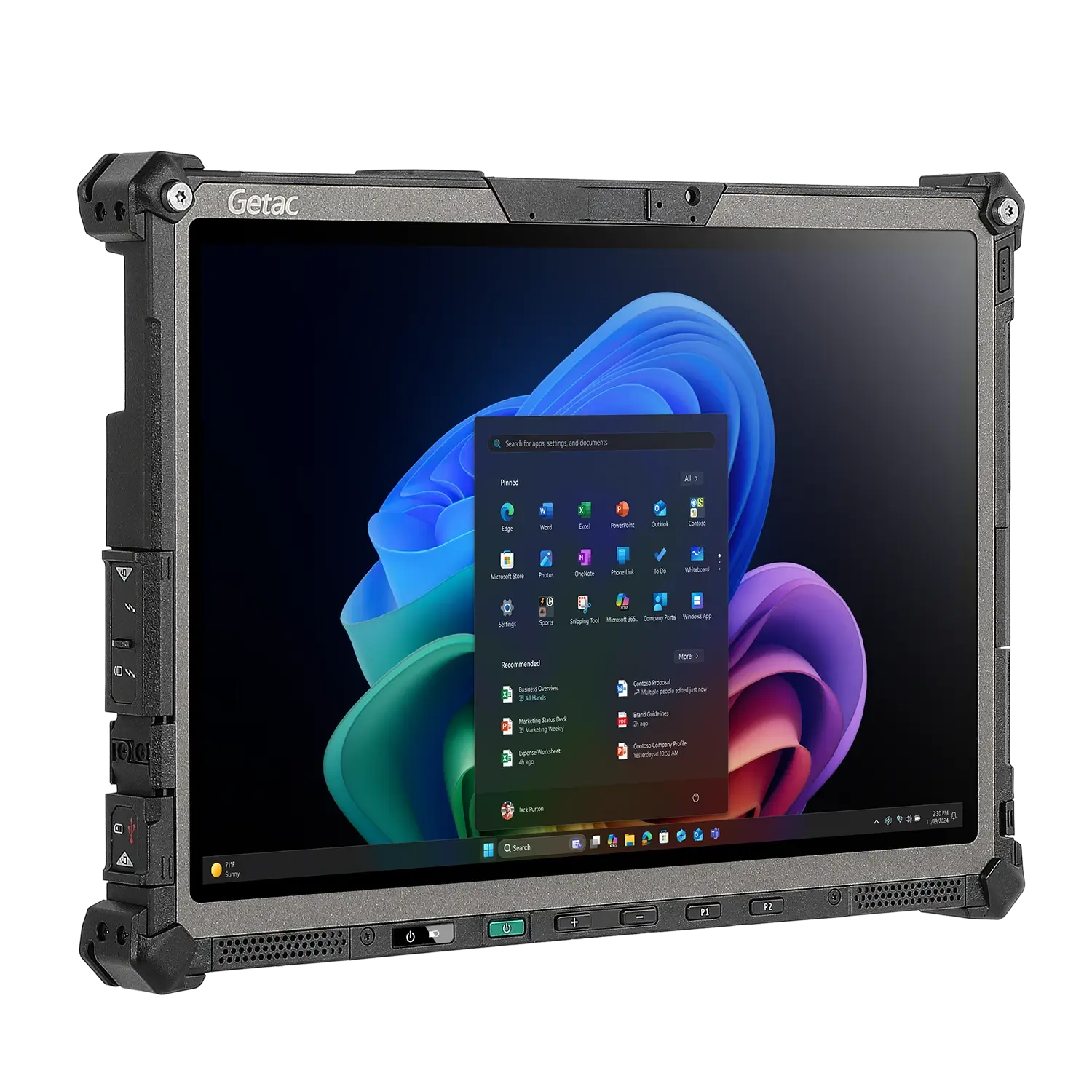 Ключевым преимуществом модели является баланс между размером экрана и габаритами корпуса: 12.2-дюймовый дисплей LumiBond® с яркостью 1200 нит обрамлен узкой рамкой, что делает устройство более компактным и легким по сравнению с аналогами. Технология Smart Touch позволяет сенсорному экрану автоматически адаптироваться к вводу пальцем, в перчатках или стилусом без ручного переключения режимов.