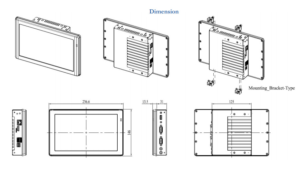 Панельный компьютер ICOP PINT-090T-APL-N4-4G оснащён 9-дюймовым дисплеем WSVGA TFT LCD с разрешением 1024 x 600 пикселей и яркостью 300 кд/м². Экран поддерживает резистивный сенсорный ввод, обеспечивая точное управление в промышленных условиях. Встроенный процессор Intel Pentium N4200 с тактовой частотой до 2,5 ГГц и 4 ГБ оперативной памяти DDR3L гарантируют стабильную работу при температуре от 0 до +60°C. Максимальный объём оперативной памяти достигает 8 ГБ, что позволяет эффективно решать задачи в области промышленной автоматизации и мониторинга.