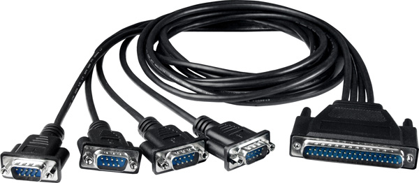 - Разъемы: DB-37 Male (D-sub) с одной стороны и четыре DB-9 Male (D-sub) с другой, позволяющие подключать до четырех устройств.
