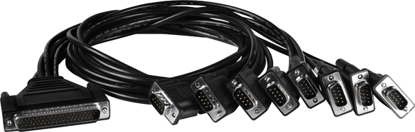 - Универсальность подключения: возможность подключения одного DB-62 Male (D-sub) разъема к восьми DB-9 Male (D-sub) разъемам, что упрощает организацию множества последовательных интерфейсов.