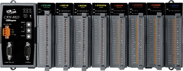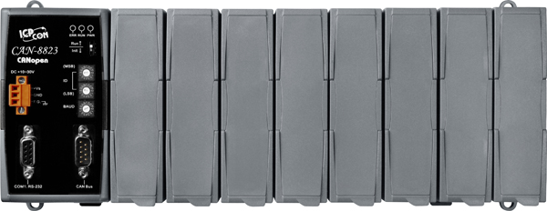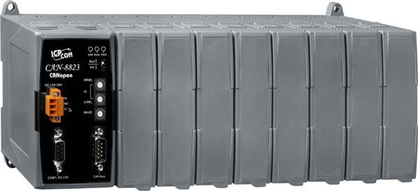 Корзина расширения CAN-8823-G CR от компании ICP DAS предназначена для интеграции с промышленными системами, использующими протокол CANopen. Это устройство обеспечивает расширение возможностей ввода-вывода, предлагая 8 слотов для подключения различных модулей ввода-вывода серии I-8K и I-87K, что позволяет гибко настраивать систему под конкретные требования.