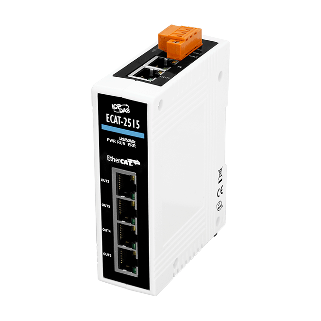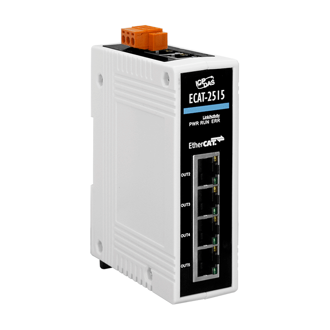Модуль ECAT-2515 CR от компании ICP DAS представляет собой ведомое устройство EtherCAT с одним входом и пятью выходами, предназначенное для расширения возможностей EtherCAT-сети. Этот модуль обеспечивает гибкость в проектировании и монтаже промышленных автоматизированных систем, позволяя реализовывать как кольцевые (daisy chain), так и звездообразные топологии соединений.