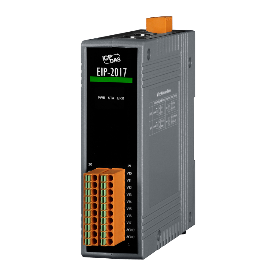 Модуль EIP-2017 CR от компании ICP DAS предназначен для преобразования аналоговых сигналов в цифровые данные с использованием протокола EtherNet/IP. Устройство оснащено 8 дифференциальными или 16 однонаправленными каналами аналогового ввода, что позволяет гибко настраивать систему в зависимости от требований приложения.