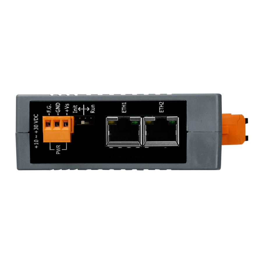 - Два порта Ethernet 10/100 Base-T(X) с разъемами RJ45, обеспечивающие возможность последовательного соединения устройств (daisy-chain) и упрощение прокладки кабелей.