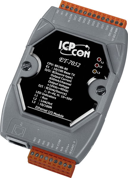 Модуль ET-7052 CR от компании ICP DAS представляет собой промышленное устройство, предназначенное для расширения возможностей автоматизированных систем управления. Он оснащён 8 каналами изолированного дискретного ввода типа "мокрый контакт" и 8 каналами изолированного дискретного вывода с открытым коллектором (Source). Это решение идеально подходит для интеграции в системы, требующие надежного ввода и вывода сигналов с различными уровнями напряжения и изоляцией.