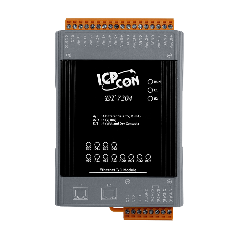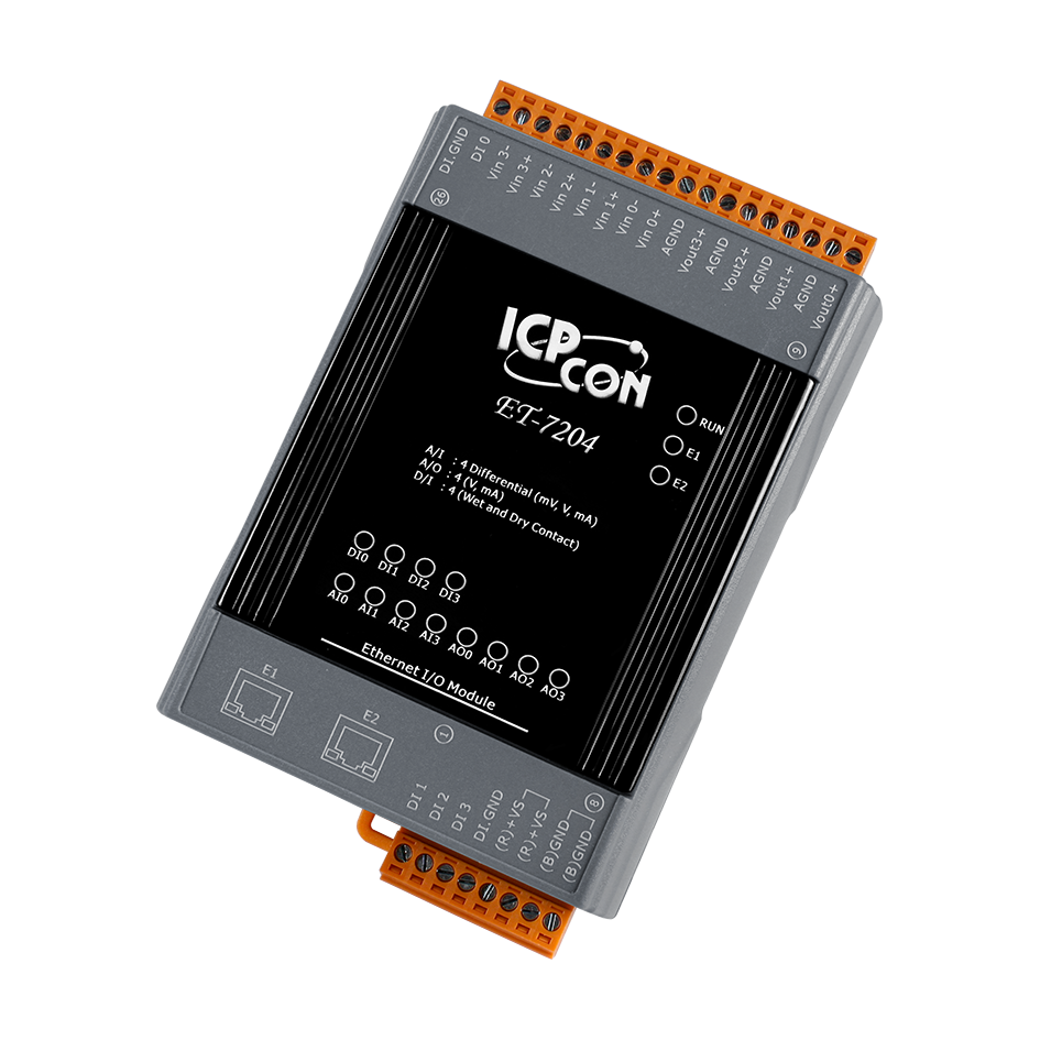 Модуль ET-7204 CR от ICP DAS представляет собой многофункциональное устройство, предназначенное для интеграции в системы автоматизации и мониторинга. Он оснащён четырьмя аналоговыми входами, четырьмя аналоговыми выходами и четырьмя цифровыми входами, что делает его универсальным решением для различных промышленных приложений.