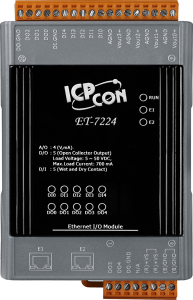 Модуль ET-7224 CR от компании ICP DAS представляет собой Ethernet-устройство ввода-вывода, оснащённое встроенным 2-портовым Ethernet-коммутатором. Он предназначен для интеграции в системы автоматизации, требующие надёжного и гибкого управления входами и выходами через сеть Ethernet.