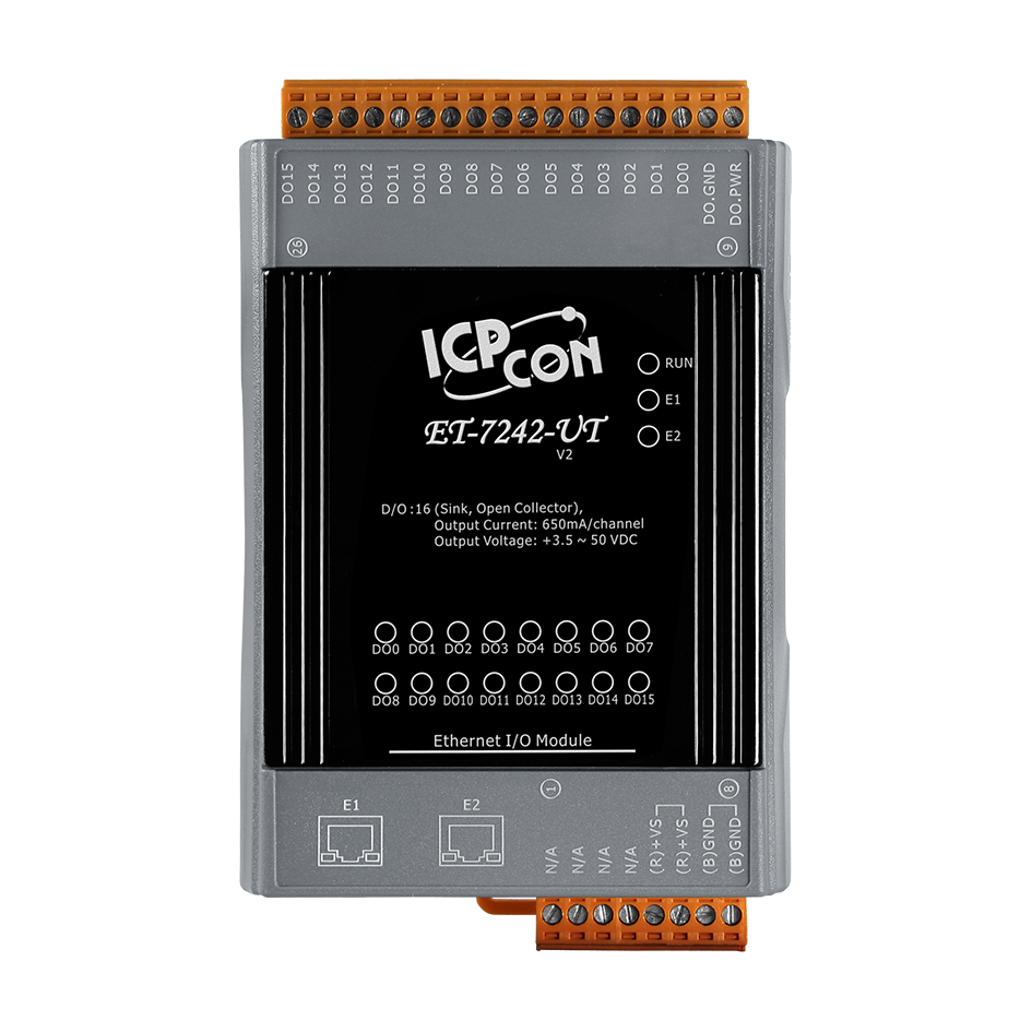 Модуль ET-7242-UT CR от ICP DAS представляет собой промышленное устройство ввода-вывода с двумя портами Ethernet, оснащённое 16 каналами дискретного вывода и встроенным 2-портовым Ethernet-коммутатором. Этот модуль предназначен для интеграции в системы автоматизации, требующие надёжного и эффективного управления цифровыми выходами через сеть Ethernet.