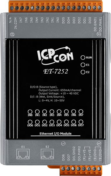 Модуль ET-7252 CR от компании ICP DAS представляет собой промышленный Ethernet-модуль ввода/вывода, оснащённый встроенным 2-портовым Ethernet-коммутатором. Он обеспечивает 8 каналов дискретного ввода и 8 каналов дискретного вывода, что делает его идеальным решением для задач автоматизации и мониторинга в промышленной сфере.