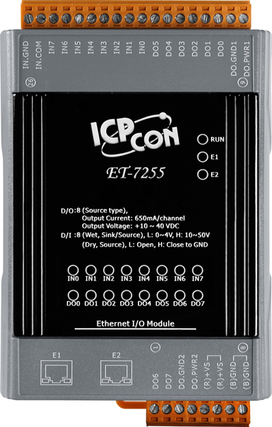 Модуль ET-7255 CR от ICP DAS представляет собой промышленное устройство ввода-вывода, предназначенное для интеграции в системы автоматизации с использованием Ethernet-сети. Он оснащён 8 каналами дискретного ввода и 8 каналами дискретного вывода, а также встроенным 2-портовым Ethernet-коммутатором, что позволяет эффективно организовывать сетевую инфраструктуру без необходимости дополнительных устройств.