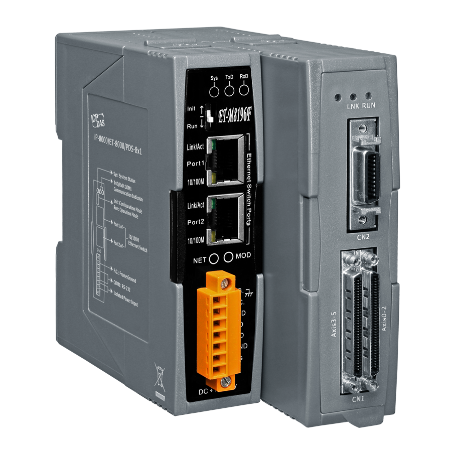 Модуль ET-M8196F от компании ICP DAS представляет собой высокоскоростной удаленный контроллер с 6-осевым модулем управления движением, предназначенный для интеграции в системы автоматизации с использованием протокола Modbus TCP. Устройство обеспечивает эффективное управление шаговыми и импульсными сервоприводами, предлагая гибкие возможности для различных промышленных приложений.